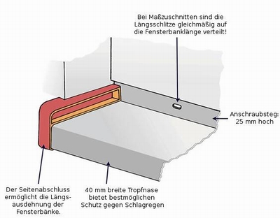 Aluminium Fensterbänke - passendes Zubehör wie Bordstücke links und rechts und Fensterbankschrauben lieferbar